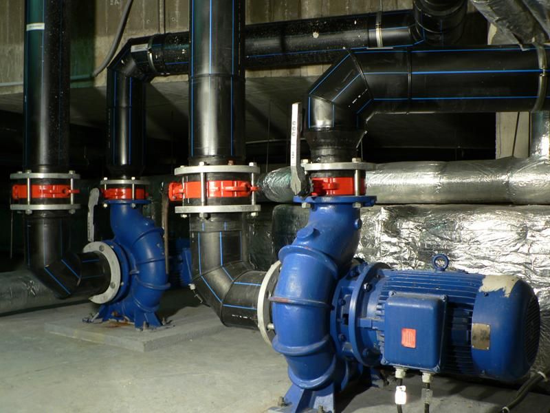 Dva automaty řeší kompletní regulaci kotelny - kaskádu 3 kotlů, tj. regulaci TUV a hlavních topných větví pro bazén, včetně venkovního. Čtyři automaty řídí 4 vzduchotechniky včetně rekuperace a směšování a současně regulují topení v provozních prostorách, včetně větve podlahového vytápění. Současně porovnáváním vnitřní a venkovní teploty řídí odvlhčování. Další automat řídí ventilaci služebních prostorů. Dva automaty řídí větrání a topení vestibulu a šaten. Další dva mají na starosti časové řízení všech atrakcí (tobogán, chrliče, vířivky). Tři malé automaty řídí vzduchové zavětrávání oken proti rosení. Centrální monitoring a řízení včetně archivace teplot a vlhkostí s grafickým zobrazením je řešeno dispečerským pracovištěm s vizualizačním prostředím ControlWeb. Osazení: 11xMPC300, 3xM66Celkový počet I/O bodů: 450 I/O bodů Autor aplikace: Ingsoft s.r.o. Praha, ingsoft.sweb.cz