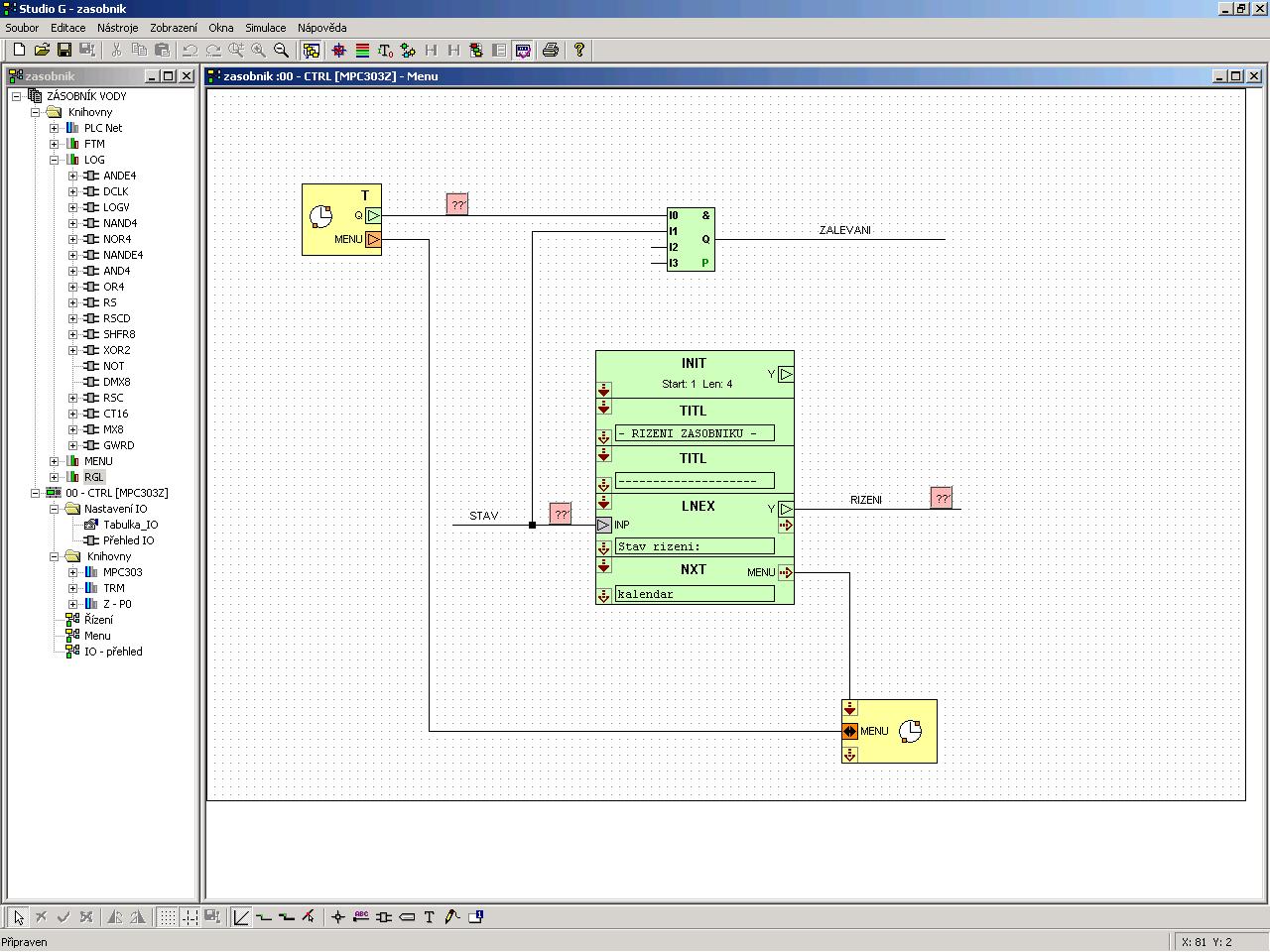 Studio-G je nástroj pro programování automatů a periferií MICROPEL schématem. Poskytuje bohatou sadu funkcí a rozsáhlou podporu pro úspěšnou realizaci řízení